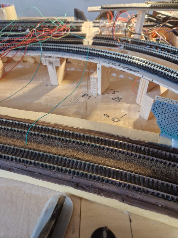 Da sich der Aufbau noch im frühem Stadium befindet, habe ich mich zum trennen der Anlage in diesem Bereich entschieden. Hier war nun Handarbeit, Fleiß und "ruhig Blut" angesagt