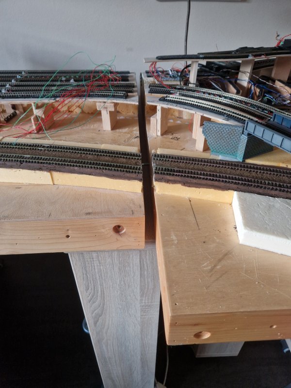 Ich selber habe aber dadurch gemerkt, dass der rechte Teil mit 2 Meter Länge, mir irgendwann Probleme bereiten wird. Zum Bau der Anlage habe ich damals auf fertige Module zurückgegriffen. Diese wurden zum Zwecke der Stabilität untereinander verleimt.