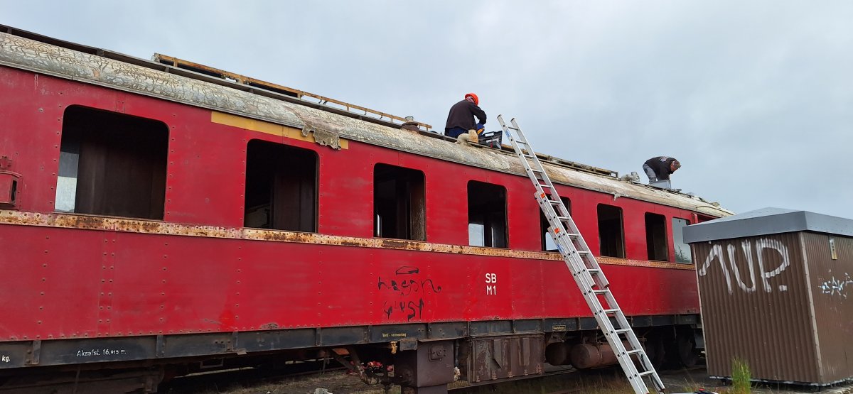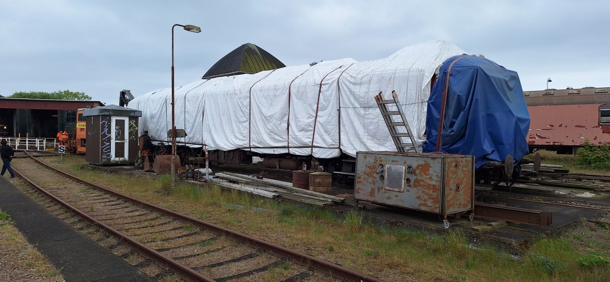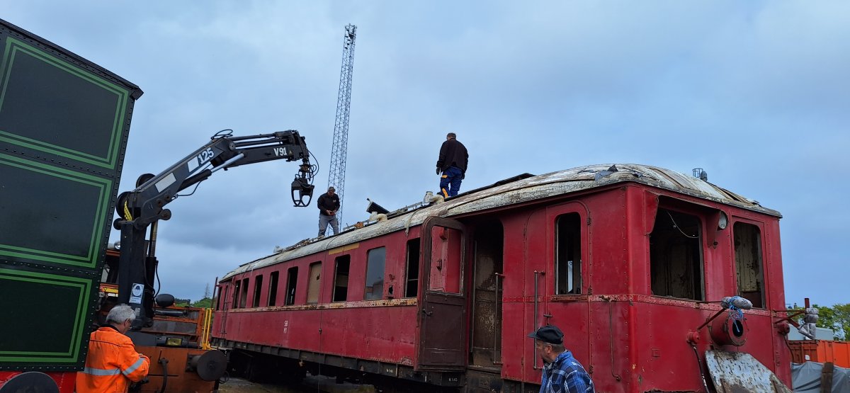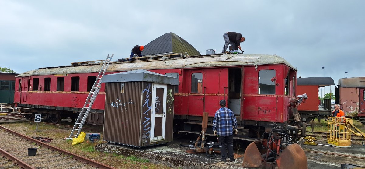 Nach dem unser Eisenbahnverein den Triebwagen gekauft hat ging es jetzt an die Vorbereitung für den Transport aus Gedser über Rostock nach Wismar. Da der Transport nur als Schwerlasttransport über die Straße möglich ist mussten wir jetzt alle Dachaufbauten entfernen, da der Transport sonst nicht auf die Fähre passt. So waren heute 5 Vereinsmitglieder beschäftigt dieses zu erledigen. Auch mit der Hilfe der Dänischen Vereinsmitglieder aus Gedser. Bis kurz vor 18:00 waren wir damit fertig und bereitgestellt für Dienstag zur Abholung.