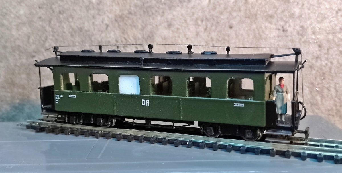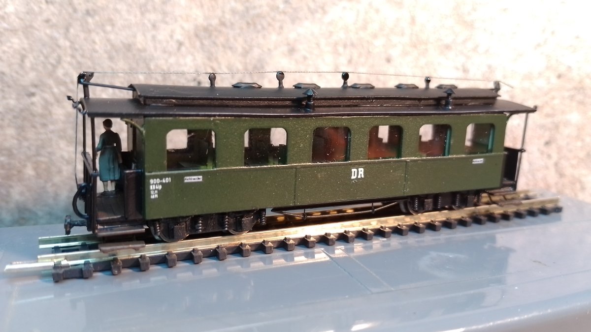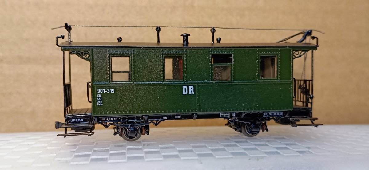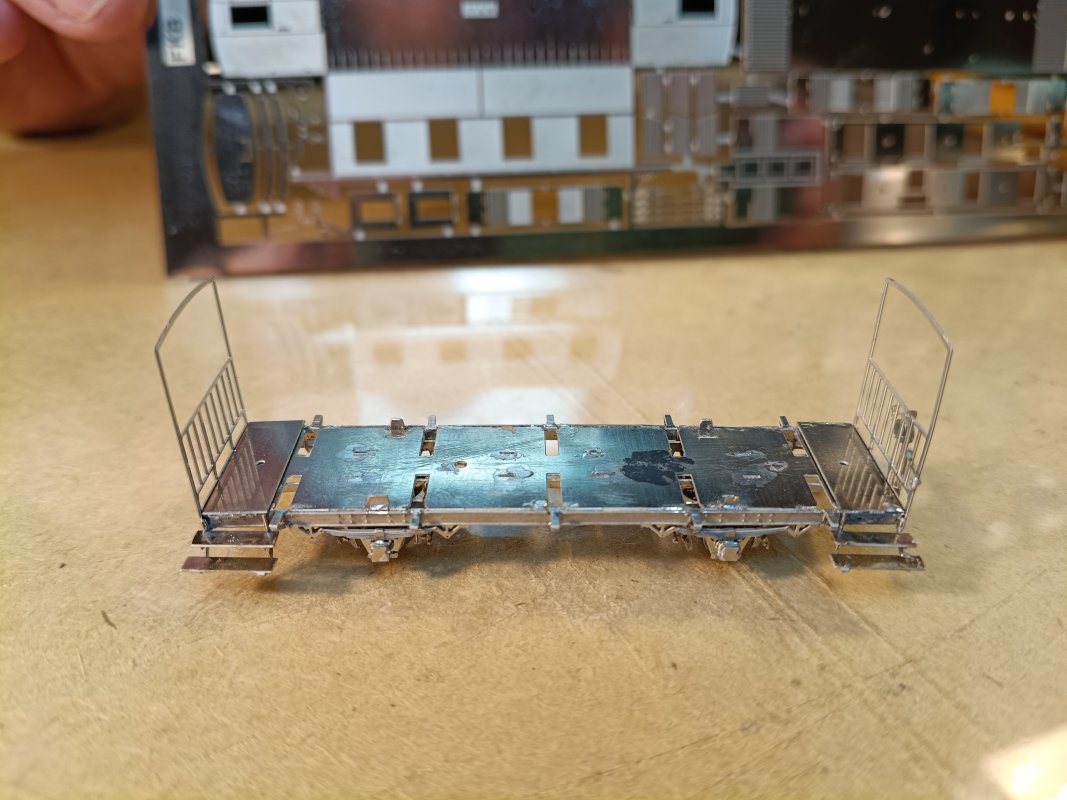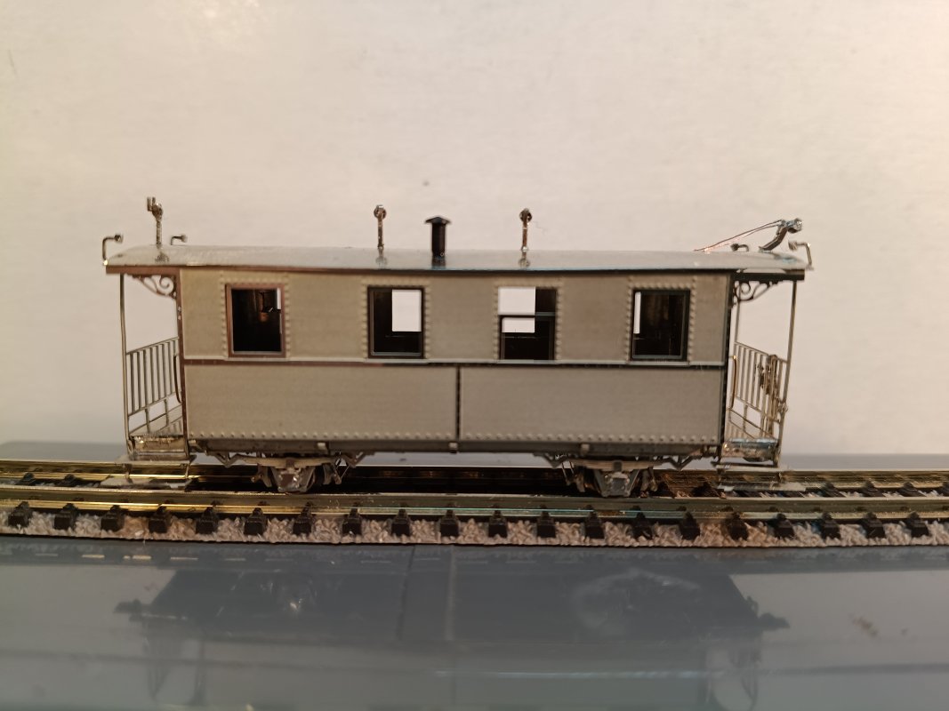 Bei diesem Wagen verließ ich meine herkömmliche Bauweise und lötete erstmals einen Bausatz aus Neusilber unter fachkundiger Anleitung zusammen. Ich bin immer noch begeistert von der Filigranität und dem Detailreichtum.