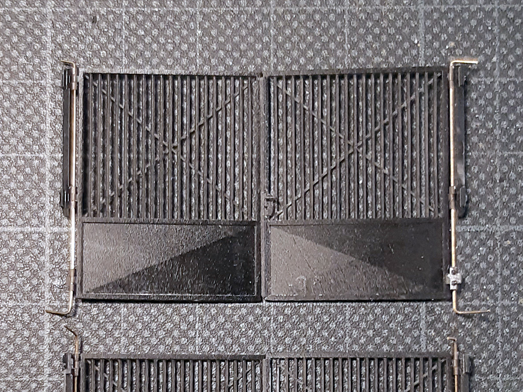 Eine Schwierigkeit ist, den Draht so zu befestigen, dass sich das Tor leicht öffnen lässt, aber die Stifte nicht herausfallen. Beim fixieren mit UV-Resin habe ich da leider einige Fehlversuche gehabt. Das Exemplar mit Säule ist ein nicht 100%ig gelungener Test.