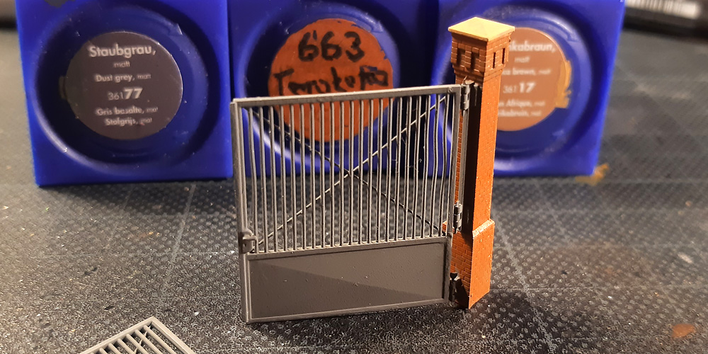 Zu von mir gedruckten Säulen sollte ein Tor entstehen. Das Projekt ist leicht aus dem Maßstab, da der Einsatz der TT-Säulen im H0e-Kontext erfolgen soll.