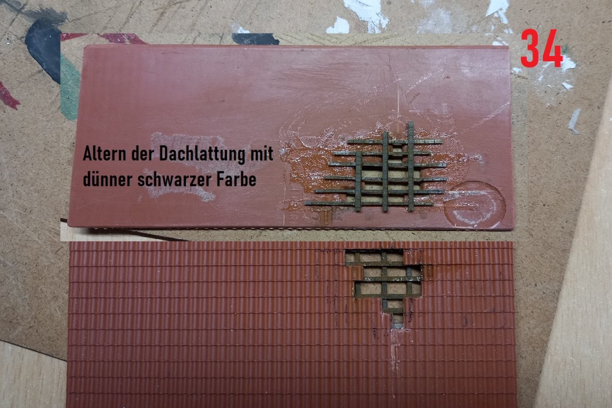 heute ist eine der Dachplatten dran. Hier sollen später optisch einige Ziegel fehlen.