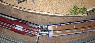 Inzwischen habe ich meine erste DE18 probegefahren und genauer beäugt. Fuhr anfangs nur sehr verhalten, kam aber dann in Gang, ist dennoch auch nach dem Einfahren kein Renner. Lok insgesamt gelungen mit kleinem Schönheitsfehler, die Griffstange an der Kabine vorne rechts oben war gebrochen, bei zwei im Laden angesehenen Loks #TT9057ern das selbe. Guckt man mal z.B. das Werbebild der Hellgrauen mit dem DBAG-Keks bei ELRIWA vergrößert an, stellt man das dort auch fest. Scheint ein Serienfehler zu sein. Werde mal vorsichtig mit etwas Sekundenkleber versuchen zu richten, da ich die sonst schöne Lok nicht zurückgeben möchte.