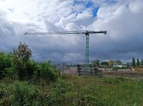 Letztes Wochenende wurden schon zwei weitere Kräne auf dem Baufeld aufgestellt. Für was die gebraucht werden, konnte ich mir schon denken, beim Vorbeifahren war es nun auch ersichtlich, es wurde damit begonnen die (Eck-)Pfeiler aufzustellen...ob diese per Bahn oder über die Straße angeliefert werden, konnte ich leider nicht in Erfahrung bringen...