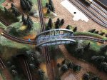 - Von der alten Brücke wurden nur die beiden Seitenteile wiederverwendet, das Mittelteil mit der Gleisführung wurde von einem neuen Brückenbausatz entnommen, farblich behandelt und das Flexgleis darauf mit Kraftkleber befestigt.