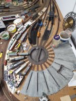 Die sehr breiten Abfahrten der Drehscheibe möchte ich tarnen, da habe ich mehrere Ideen, dazu dann mehr, wenn ich Bilder habe.