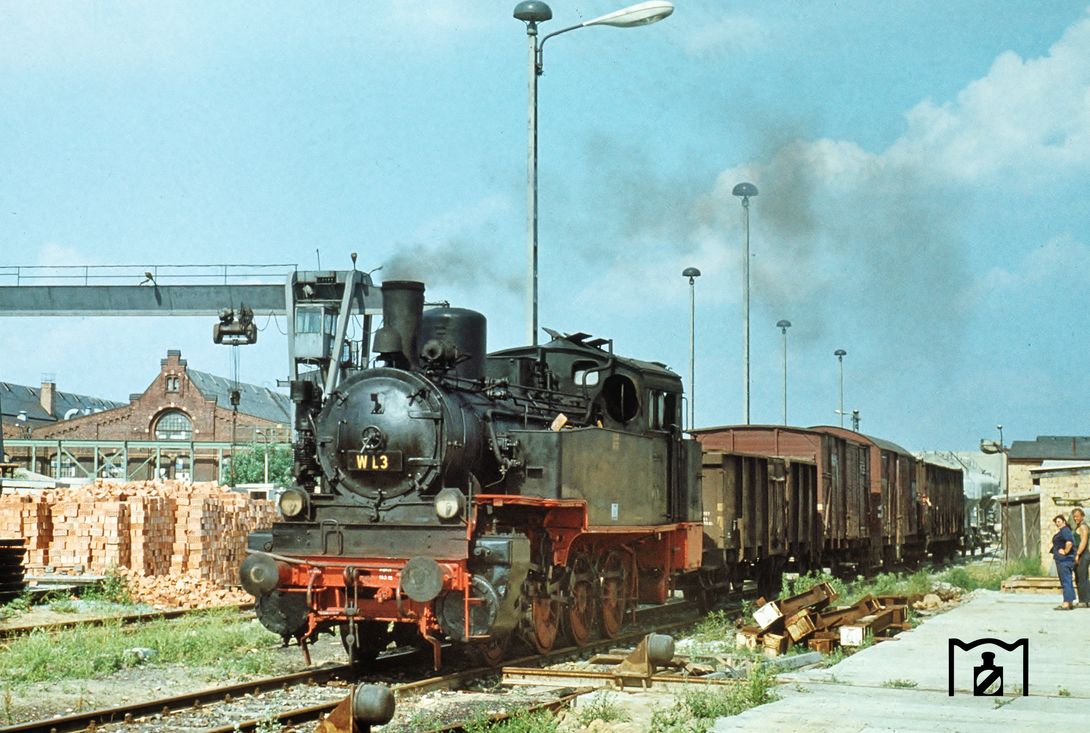 Bildtext: Werklok 3, eine preußische T 13, im Raw Cottbus. Die ehemalige 92 598 (HANOMAG 6409, 1912 als "Hannover 7907" abgeliefert) kam im März 1970 von der Reichsbahn zum Ausbesserungswerk. 1975/76 war sie als Heizlok im VEB Fleischkombinat Cottbus, Fleischverarbeitung Finsterwalde tätig, bevor sie Ende 1976 im Bw Cottbus zerlegt wurde. (1973) Foto: A. Wagner
