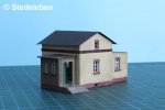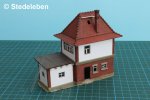 Da die Stimmung am heutigen Quarantäne-Tag Nr. 67 eher melancholisch als maigrün war, wurde beschlossen und verkündet, daß das Bahnwärterwohnhaus nun doch einen mehr oder minder sandfarbenen Putz erhalten hat, wie er hier von den meisten favorisiert wurde. Ich habe versucht, ihn ein wenig ungleichmäßig aussehen zu lassen, um anzudeuten, daß er zwar im wesentlichen intakt, aber doch schon leicht in die Jahre gekommen ist.