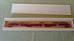 Das Dach wurde geändert, neben dem Oberteil auch Rahmen und Drehgestelle neu lackiert. In feste Pufferbohlen wollte ich nicht investieren. Bei großen Radien, wie auf Modulen üblich, ist das Ausschwenken minimal.
