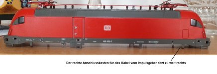 Ich habe mir einmal das Buch und das Modell angeschaut. So ist die Lage des rechten Anschlusskasten für das Kabel des Impulsgebers falsch.
