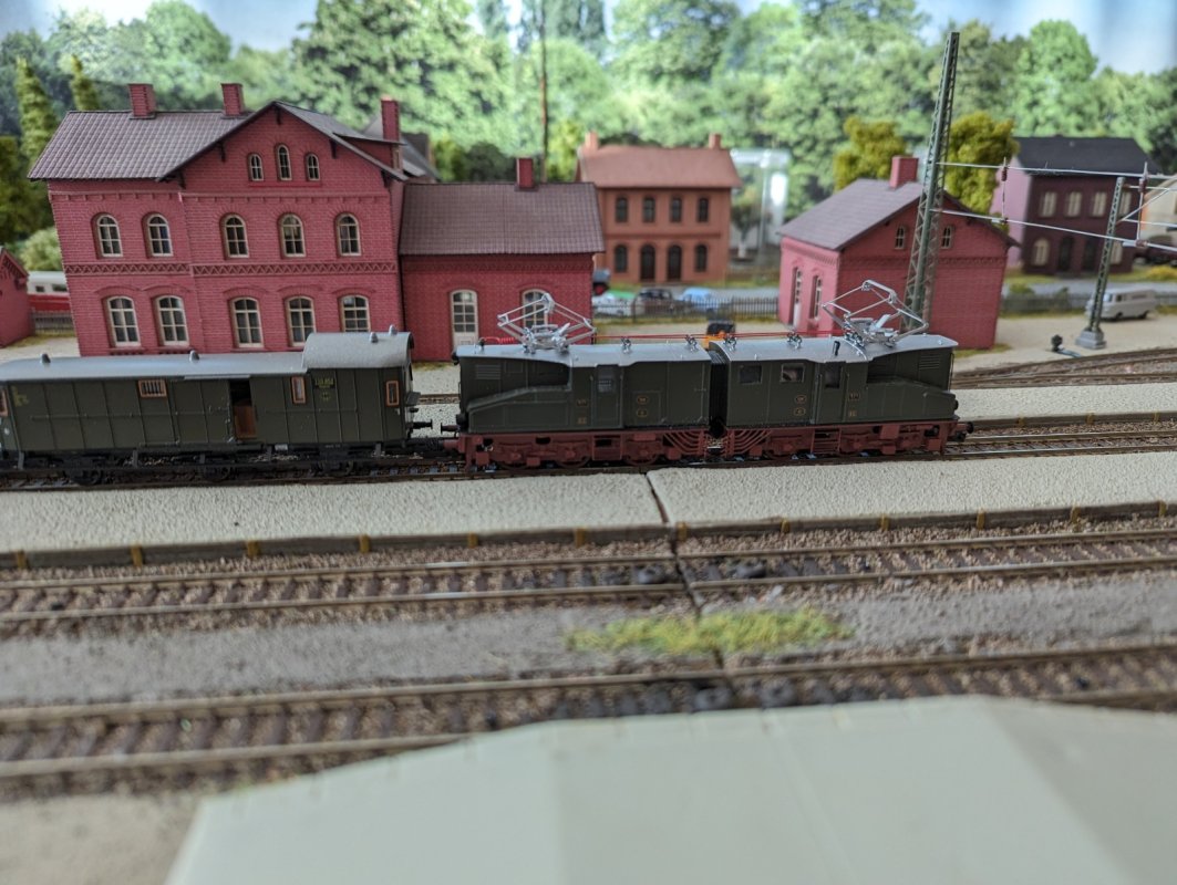 Nicht nur die EG 571 hat an d e m Ende des Zuges Probleme! Auch die E 77 von Tillig hebelt den Wagen aus. Und das betrifft auch den 3-Achser von Schirmer, den ich probeweise dazwischen gehängt hatte!