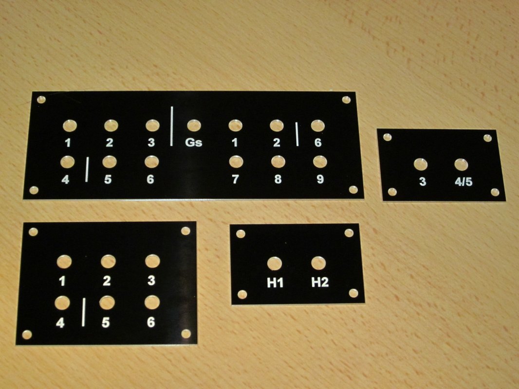Ich habe heute meine Schilder für das "Stellwerk" abholen können! Da gibt es doch eine kleine Firma bei uns, die das ganz flott erledigt. Herr Hering, der Chef des kleinen Betriebes, hatte eigentlich nur eine Handskizze von mir. Und noch am Herstellungstag (Fräsen + Bohren) konnte ich einreichen, was ich eventuell gerne graviert hätte! Auch das wurde mit erledigt und war somit eine weit bessere Lösung, als hätte ich es mit Abreibebuchstaben oder ähnlichen Methoden versucht. Seht selbst!