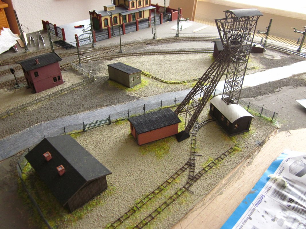 Bevor ich den Maschendrahtzaun um das Schachtgelände ziehe, habe ich erst einmal die Feldbahngleise verlegt. Jetzt weiß ich auch, wo Tore hingehören (Feldbahn, Zufahrt).