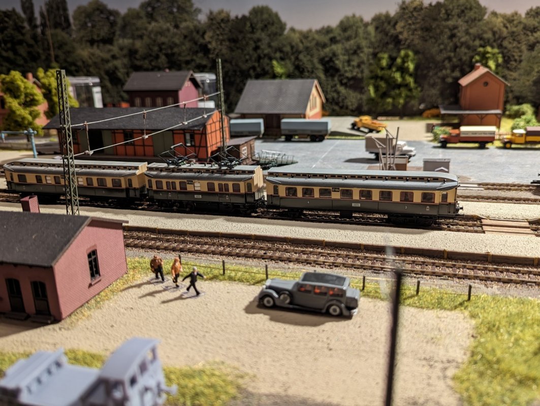 Aber Ihr dürft Euch nicht daran stören, daß ich weit von Epochereinheit entfernt bin! Das betrifft besonders auch die Umgebung. Aber auch in Güterzügen kann es unter Umständen gemischt zugehen. Bei den Reisezügen versuche ich "rein" zu bleiben.