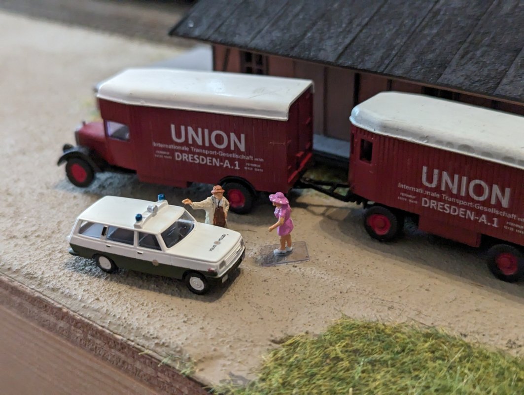 So, hier sind nun noch einmal Bilder. Bitte nicht diskutieren, daß die Straßenfahrzeuge nicht zum Zug passen! Das weiß ich, und es ist mir egal. :p