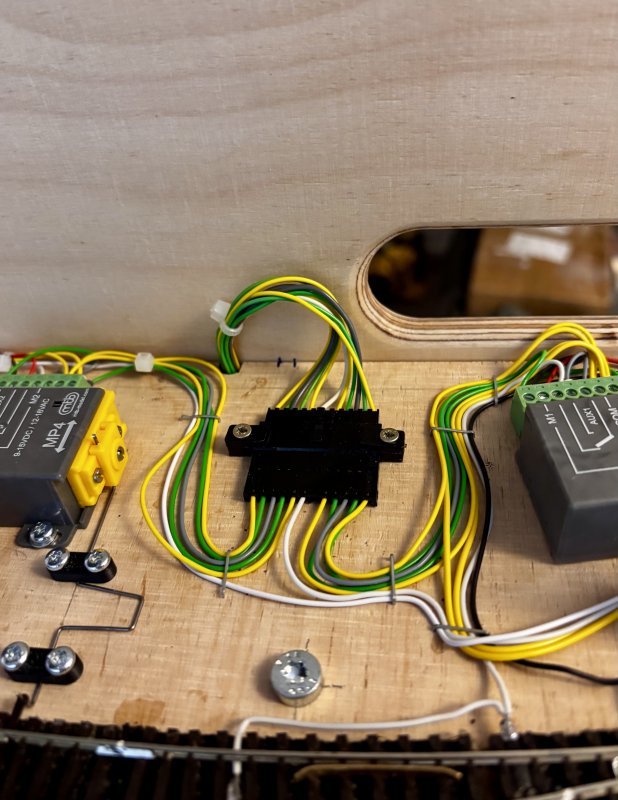 Die bisher gezeigten Schritte zum Unterbau, Gleise verlegen, Elektrik- und Elektronikinstallation wiederholen sich auf allen drei Segmenten des ersten Schattenbahnhofs. Besonders herausfordernd finde ich immer wieder das Verlöten der Segmentübergänge, speziell die Einhaltung der richtigen Wärmzeit: zu kurz mit dem Lötkolben dran - kalte Lötstelle; zu lang drangehalten und die Kupferkaschierung hebt ab. Anyway.