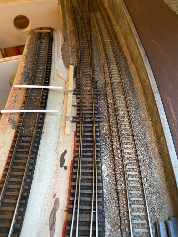 Die Gleise liegen. Jetzt müssen die Antriebe der Weichen installiert werden. Da ich im...