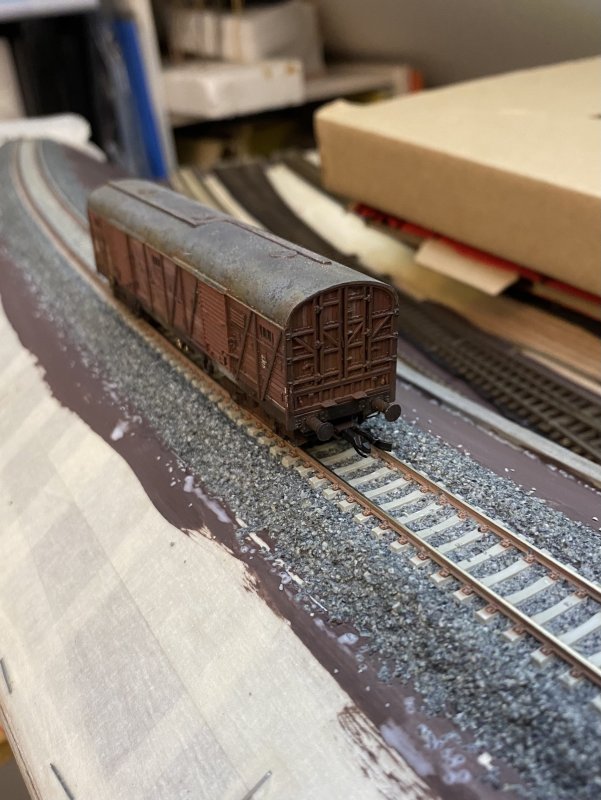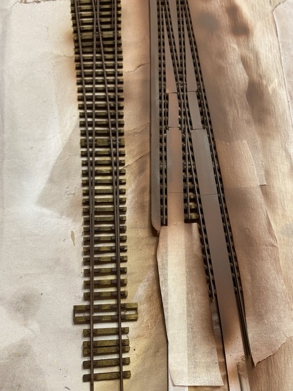 (Mir fällt gerade auf dass ich im Post 6 nicht erwähnt habe, dass ich die Schwellenbänder vor Einbau gealtert habe. Speziell die Betonschwellen gewinnen sehr mit einem Farbüberzug. Ich habe zwei Varianten gefärbt: