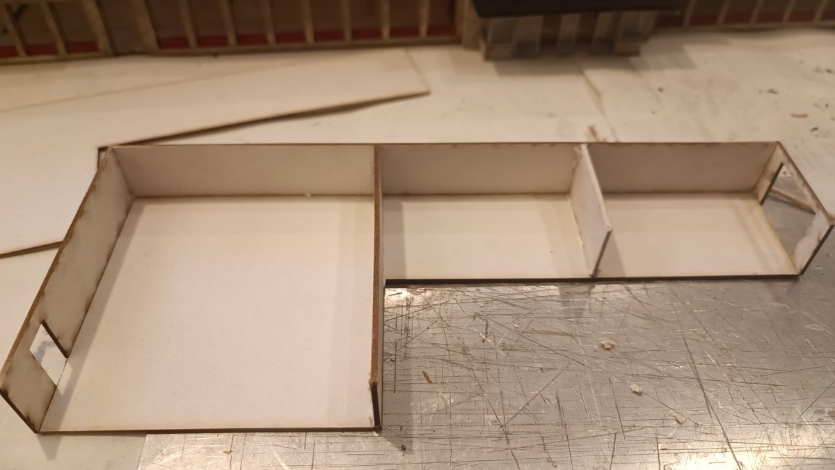 Hierzu gibt es nicht allzu viel zu sagen, Grundplatte + 3x Seitenteile + Dachplatte + Dachpappe