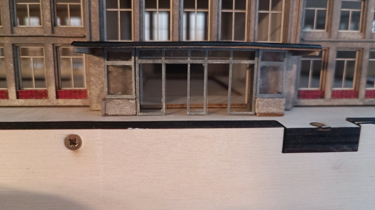 Den Windfang des Haupteinganges habe ich mit den Stiften von AK "Real Colors Markers" No.011 - Dark Aluminium gefärbt.
