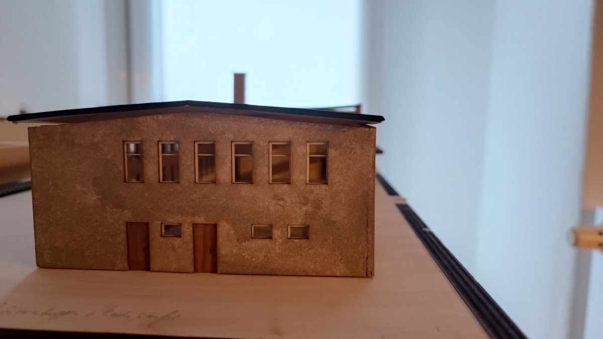 Dies war schnell gemacht und ich habe mir erlaubt, zu Stabilisierung des Daches, noch eine weitere Wand mittig der langen Seite einzubauen, so entstand eine kleine Garage für einen zukünftigen E-Karren. Die Tür auf der linken Seite wird mein zukünftiger Zugang zum Hausbahnsteig werden.