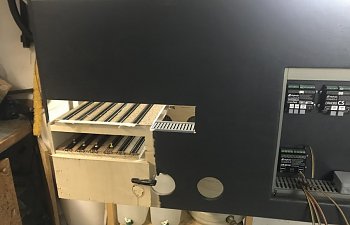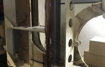 Im Inneren erfolgt die Versteifung mit Spanten. Im unteren Bereich sind bereits diverse Öffnungen für Kabelverlegung vorgesehen. Die Öffnungen in der Außenseite dienen zur besseren Installation und später als Fenster, um das Innere der Anlage besser betrachten zu können. Sollte Sie mal frei aufgestellt werden.