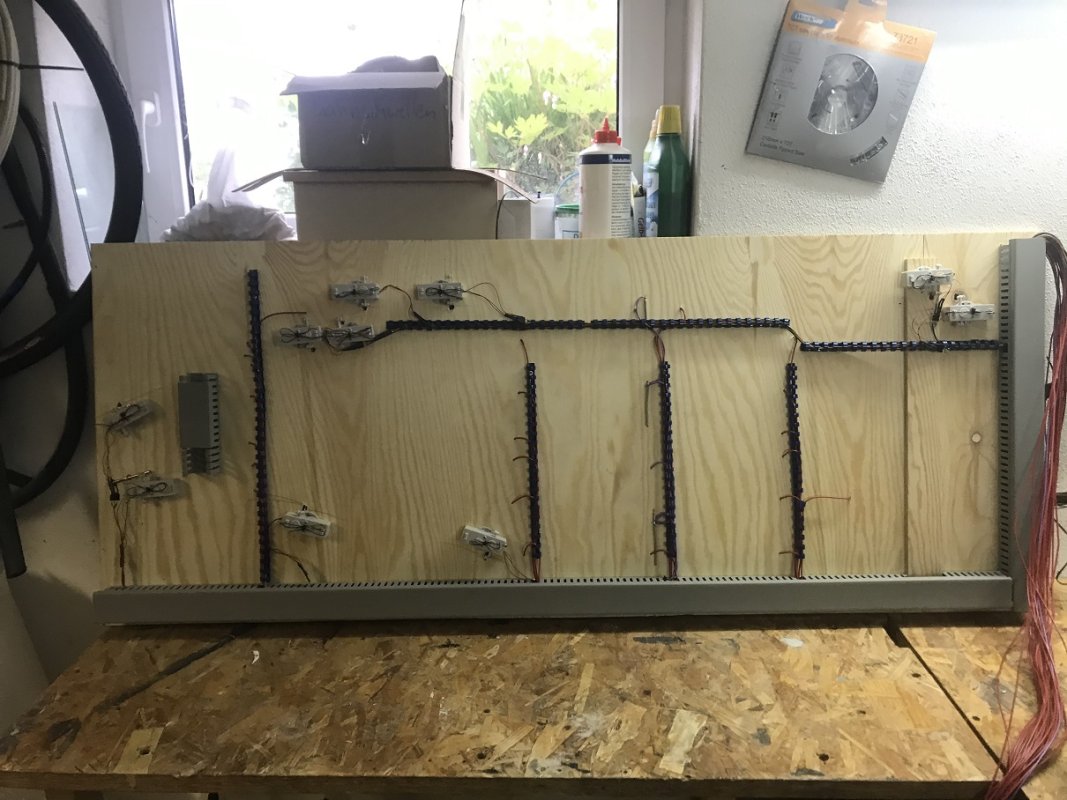 Moin, moin, ich stehe in der Planung einer Anlage und suche nach Anregungen. Dein Konzept gefällt mir. In meinem Plan beträgt der Gleisabstand von Schattenbhf. und oberirdischen Gleisen 120 mm. Davon muss die Stärke der oberen Trassenplatte und der Gleisbettung abgezogen werden, das ergibt etwa minus 16 mm. Wenn ein Querträger aus Holz zur Abstützung der oberen Platte notwendig sein sollte, kommen nochmal etwa 40 mm in Abzug. Ich hoffe, dass es sich ohne Querabstützung ausgeht, weil die Breite meines Schattenbhf. nur 600 mm ist (seitliche Abstützungen bereits eingerechnet) und einer Länge von etwa 3000 mm. Somit würden in meinem Fall für den Schattenbhf. eine lichte Höhe von 104 mm und unterhalb der Querstreben von 64 mm verbleiben. Aus deinen Bildern habe ich den Eindruck, dass du eine größere lichte Höhe gewählt hast. Hast du bereits Erfahrungen mit einer idealen lichten Höhe im Schattenbhf. Prinzipiell möchte ich auch Oberleitung installieren, im nicht sichtbaren Bereich nur mit einem steifen Draht und überall ohne elektr. Funktion.
