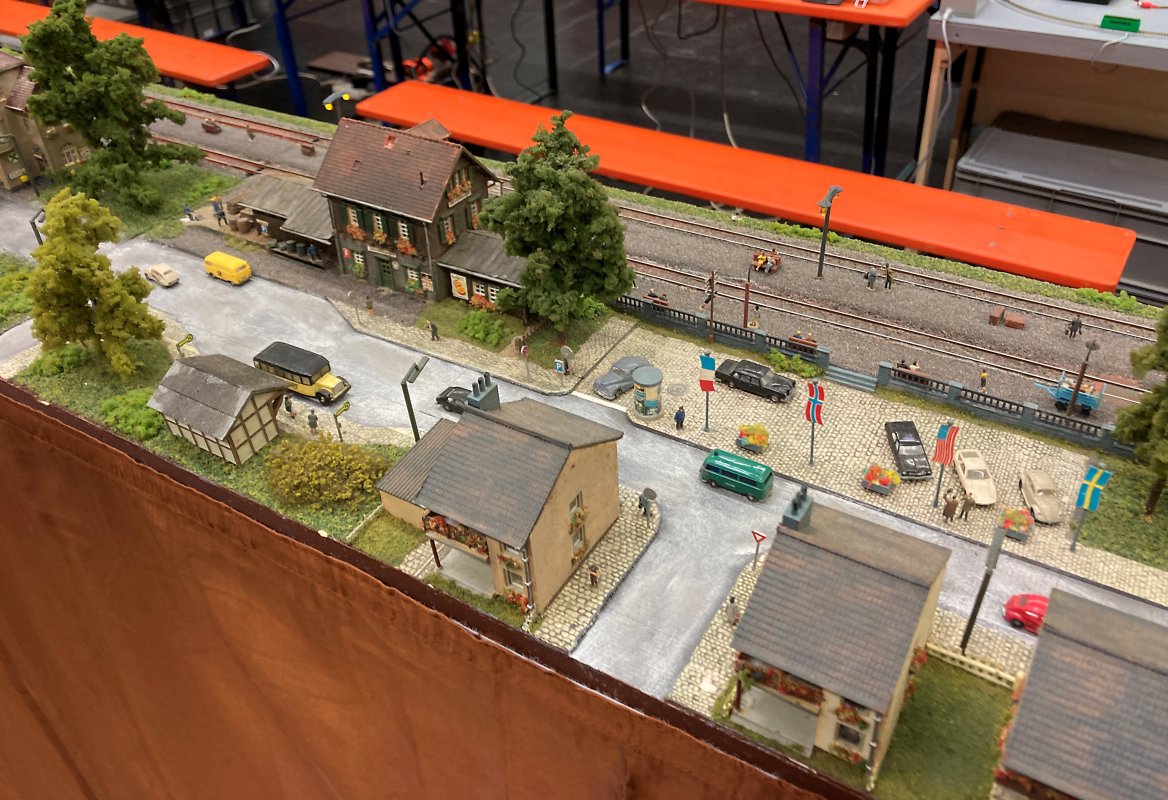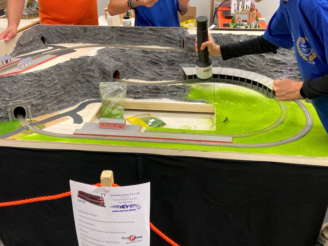 Auch unsere Spur der Mitte hat natürlich nicht gefehlt und war mit einer Schüleranlage des MEB-TT aus Salzburg vertreten. Dort bauten gerade die Schüler an der Anlage. Später war sie auch in Aktion zu erleben.