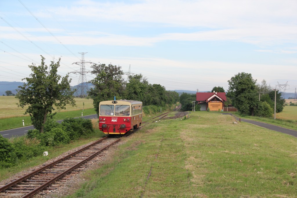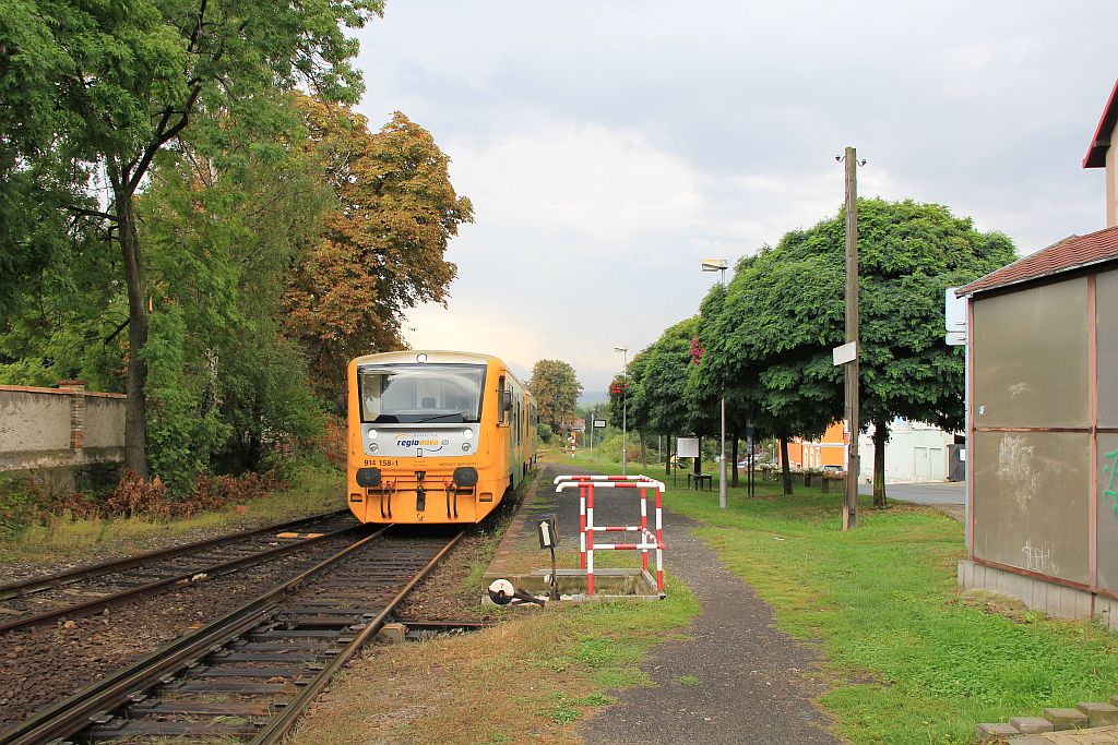 Bild 6: Kadaň předměstí, Blick Richtung Kaštice, wendender Personenzug (ČD-Triebwagen der Reihe 814/914)