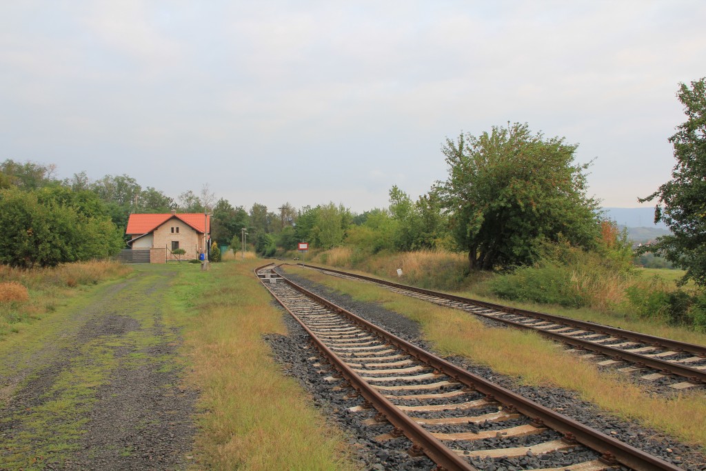 Bild 50: Vilémov u Kadaně, Streckentrennung, links nach Kaštice (weiter in Teil 3), rechts nach Kadaňský Rohozec (weiter in Teil 2)