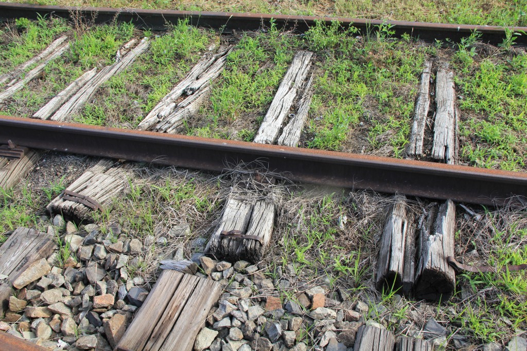 Bild 53: Vilémov u Kadaně, Holzschwellen eines Schienenstoßes