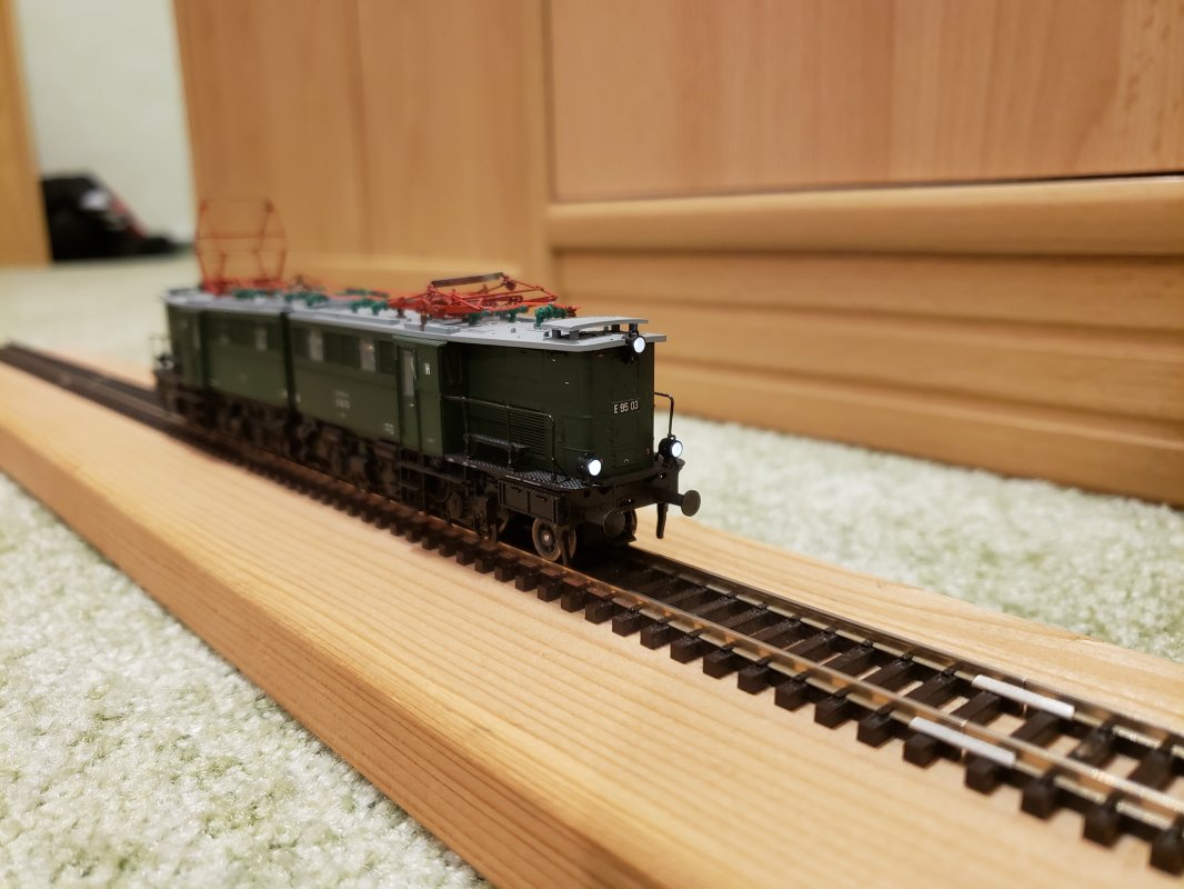 Nach langer Zeit wurde meine E95 nochmal überarbeitet mit Loklaternen von Fischermodell, neuen Vor- und Nachläufer und der Fahrluftpumpe.