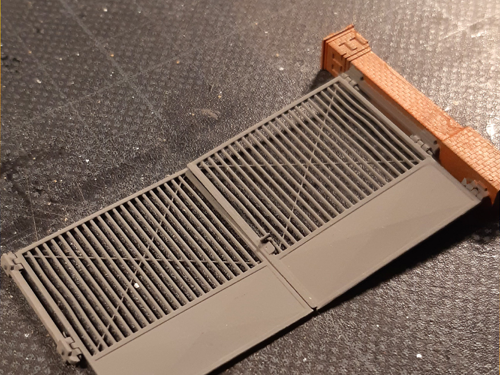 Zu von mir gedruckten Säulen sollte ein Tor entstehen. Das Projekt ist leicht aus dem Maßstab, da der Einsatz der TT-Säulen im H0e-Kontext erfolgen soll.