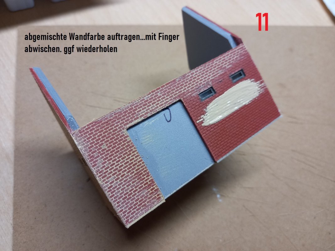 Nun kommt, ein Rest alter Wandfarbe(weiß) zum Einsatz. ( haben die meisten im Keller rumstehen ...Schmunzel)