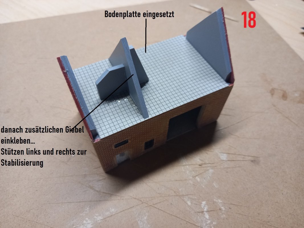 Klebt eine Giebel und eine Seitenwand ,,bündig" zusammen ...und auf die Bodenplatte .
