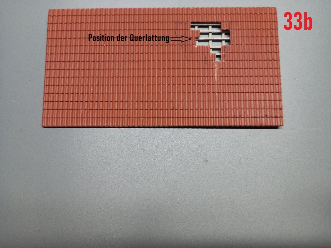 Die Öffnung auf der Innenseite rings herum dünn schleifen...die Dachplatte ist vom Maßstab her zu dick.
