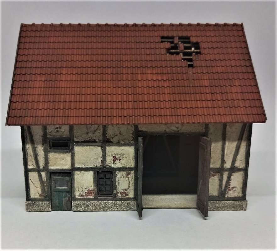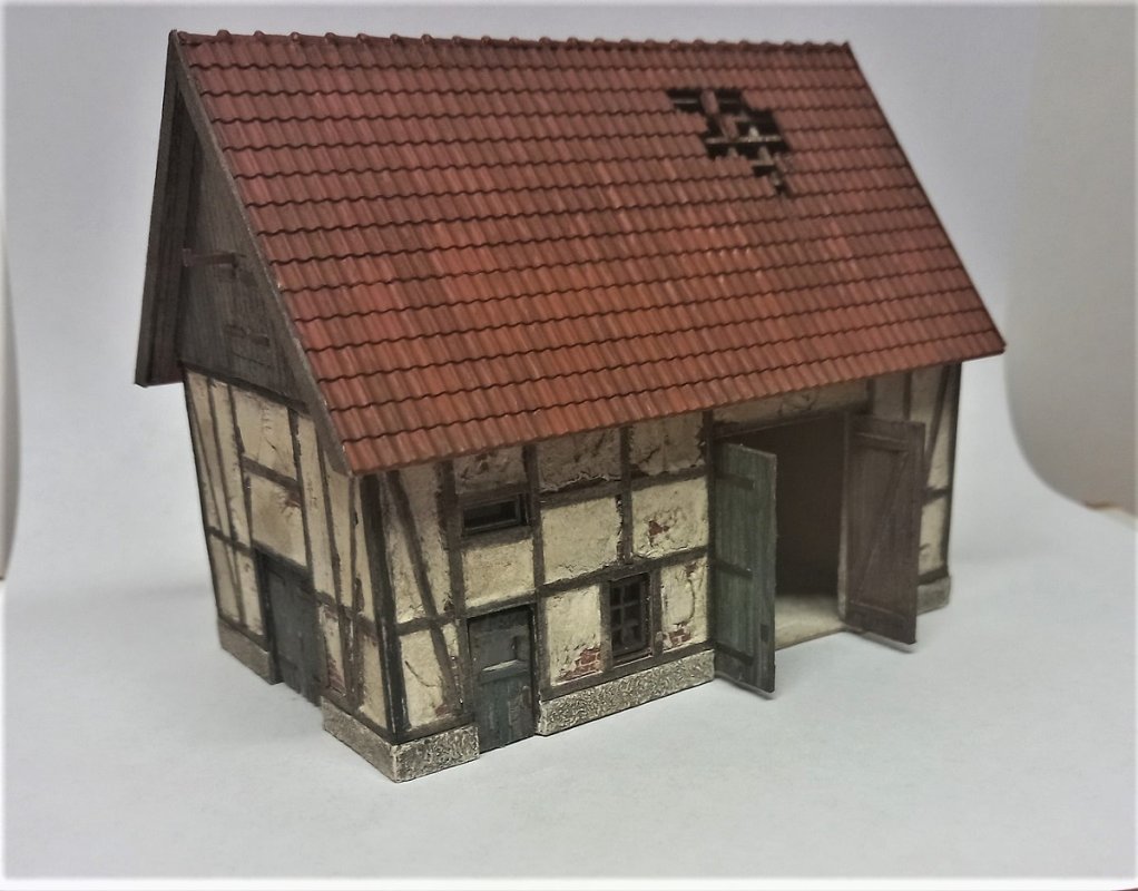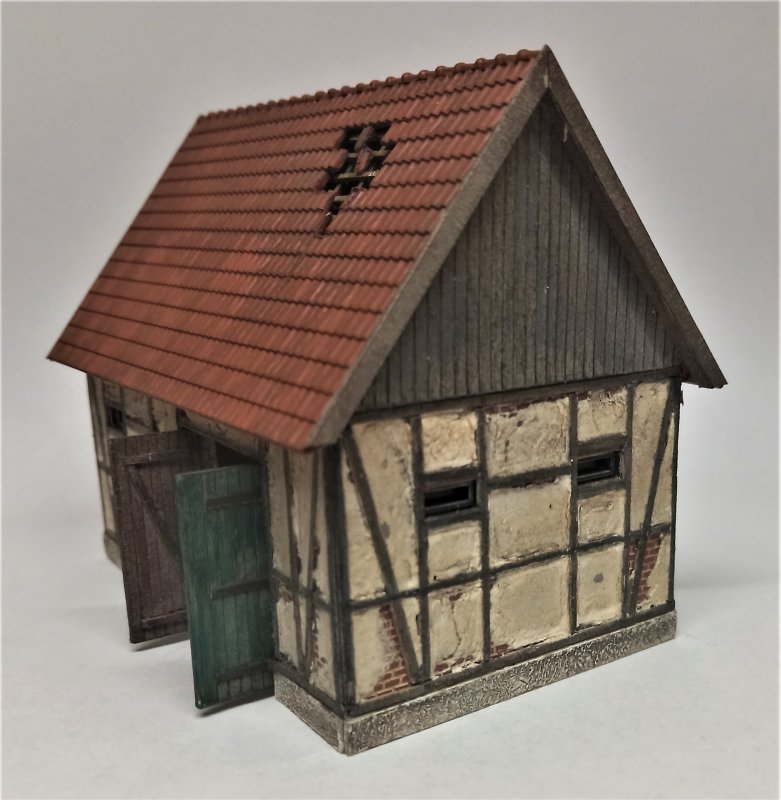 Zum Bau habe ich eine Scheune gewählt. - Verputzte Wände / Fachwerk / defektes Dach / Alterung