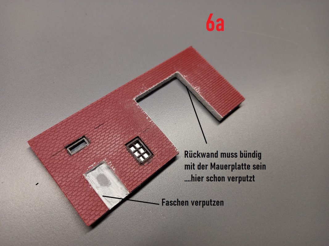 Hier nochmal zu sehen,warum die Hartschaumplatte (für die Fenster) größer ausgeschnitten ist,als die Mauerplatte.