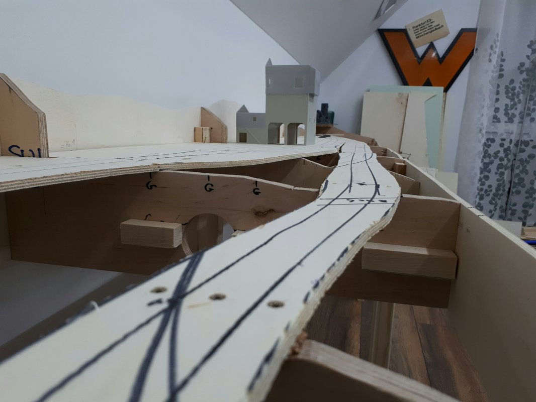 Zum Schluss habe ich dann die Innenhöhen der Bretter übernommen und schon mal die noch zu tätigenden Ausschnitte für das Gelände am Bach und Fluss angezeichnet....