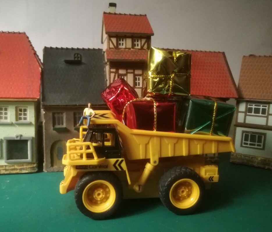 Geländer und Kabine sind definitiv für TT tauglich, der Rest spieltauglich in oranges Polystyrol gespritzt. Der Akku hält einige Minuten und man ist recht flink unterwegs