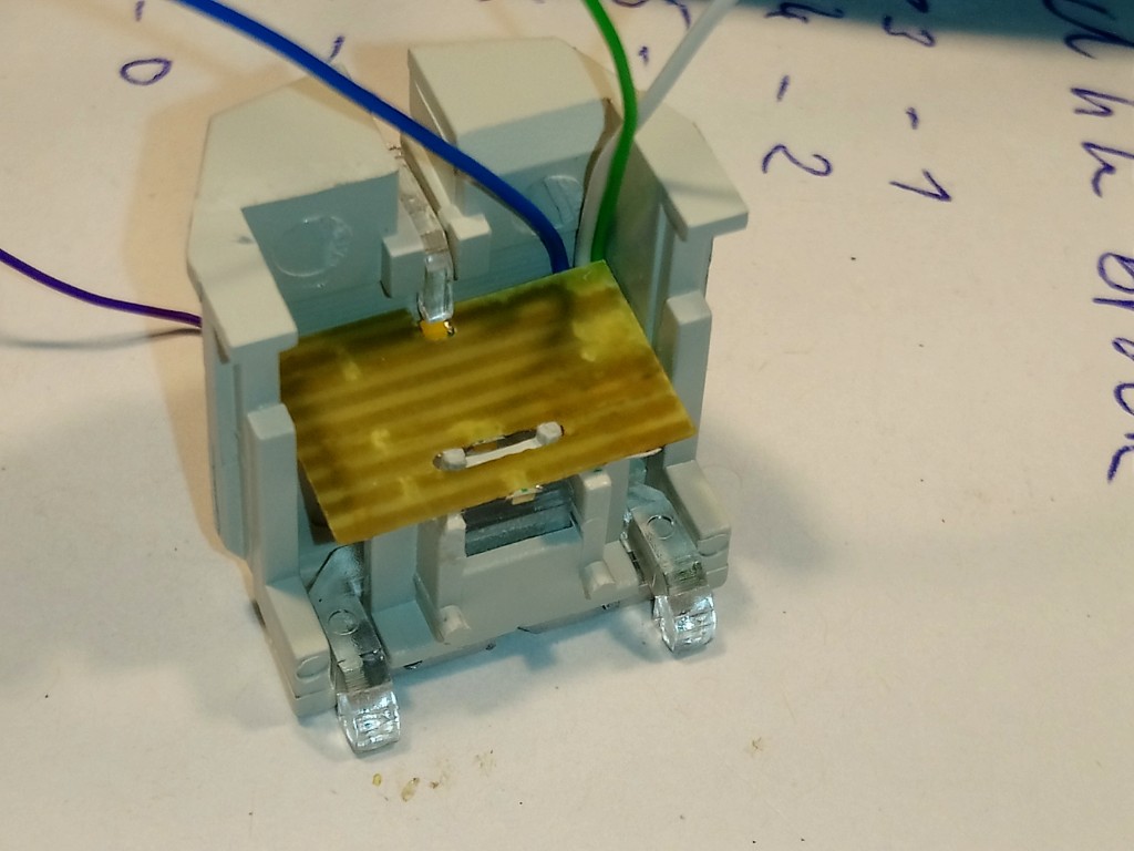 3. Bild, ist die LED mit Lackdrähten Bauform 0603 zusehen, die ich für das Führerstandslicht eingeklebt habe.