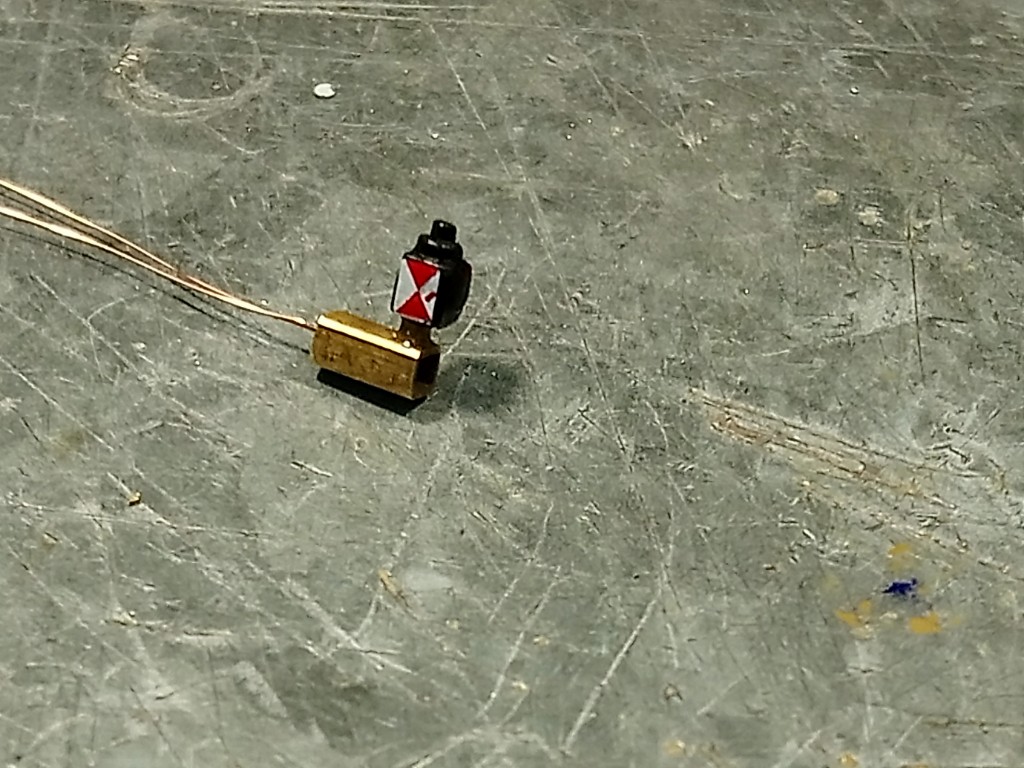 Im Bild 7 sieht man wie ich die Laterne am Wagen angebracht habe. Hierzu habe 8ch ein Vierkantmessingrohr verwendet, was die Kantenmaße von 1 mm x 1 mm hat. In das Vierkantrohr habe ich wieder ein 0,8 mm Loch gebohrt um da hindurch die Lackdrähte einzuziehen, die dann ins Wagen innere so gelangen. Die Latern wurde dann in das 0,8 mm Loch eingeklebt und später schwarz lackiert.