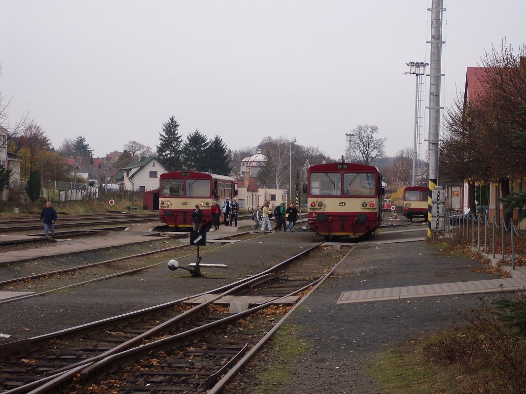 so war das mal in Rumburg-3Triebwagen in einem Gleis jeder hatte ein anderes Ziel