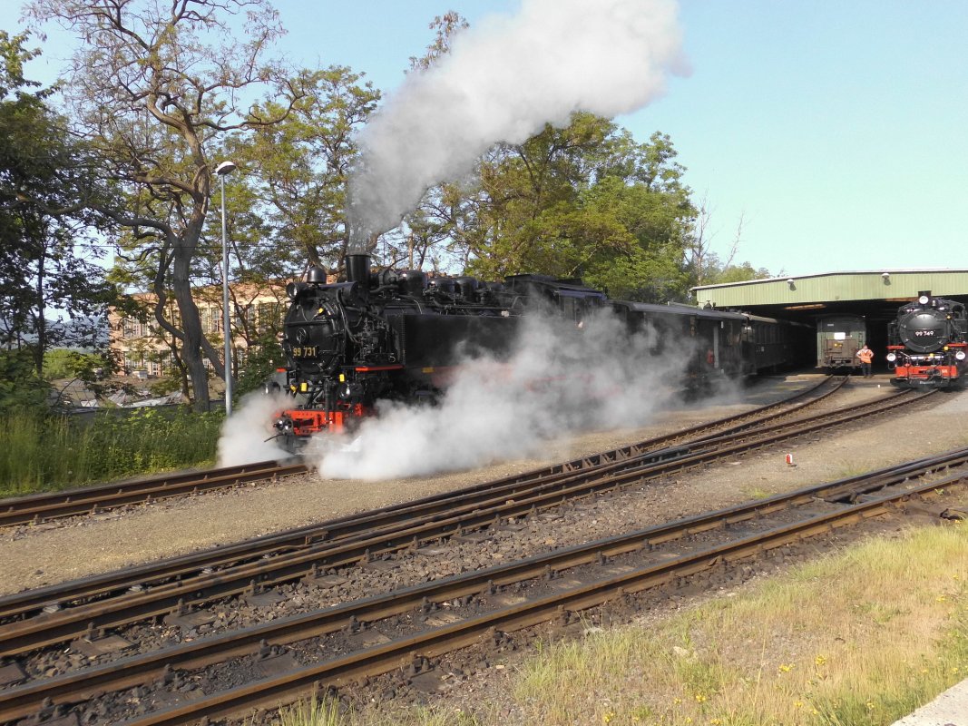 für präsenile Bettflüchter gibt es an den Sommerwochenenden die Bereitstellung der 2 Schmalspurzüge zu sehen-da möchte man aber schon um 8Uhr am Bahnhof sein