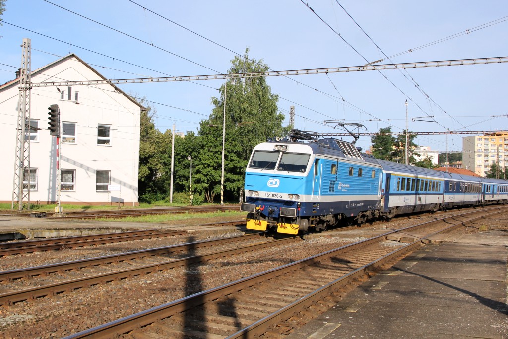Bild 6: Kralupy nad Vltavou, Schnellzug Cheb - Praha (ČD-Gleichstromlok der Reihe 151)