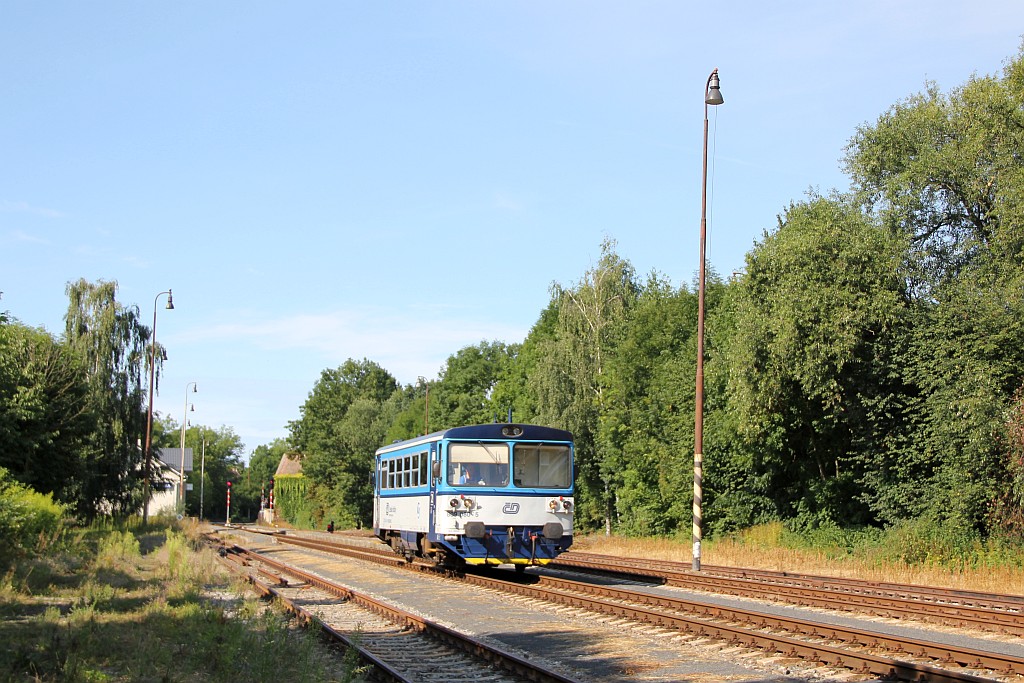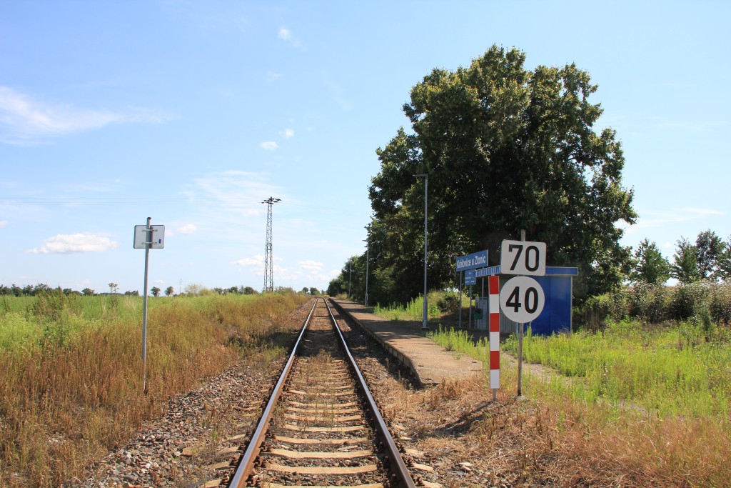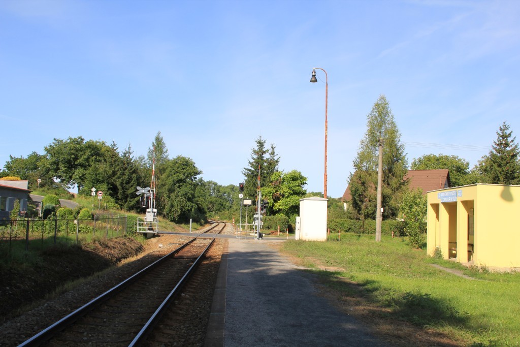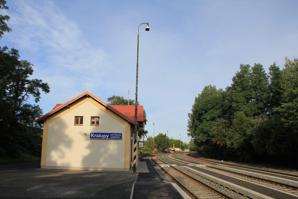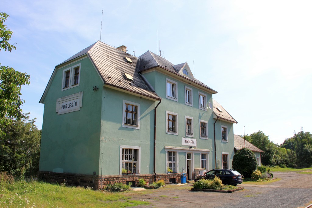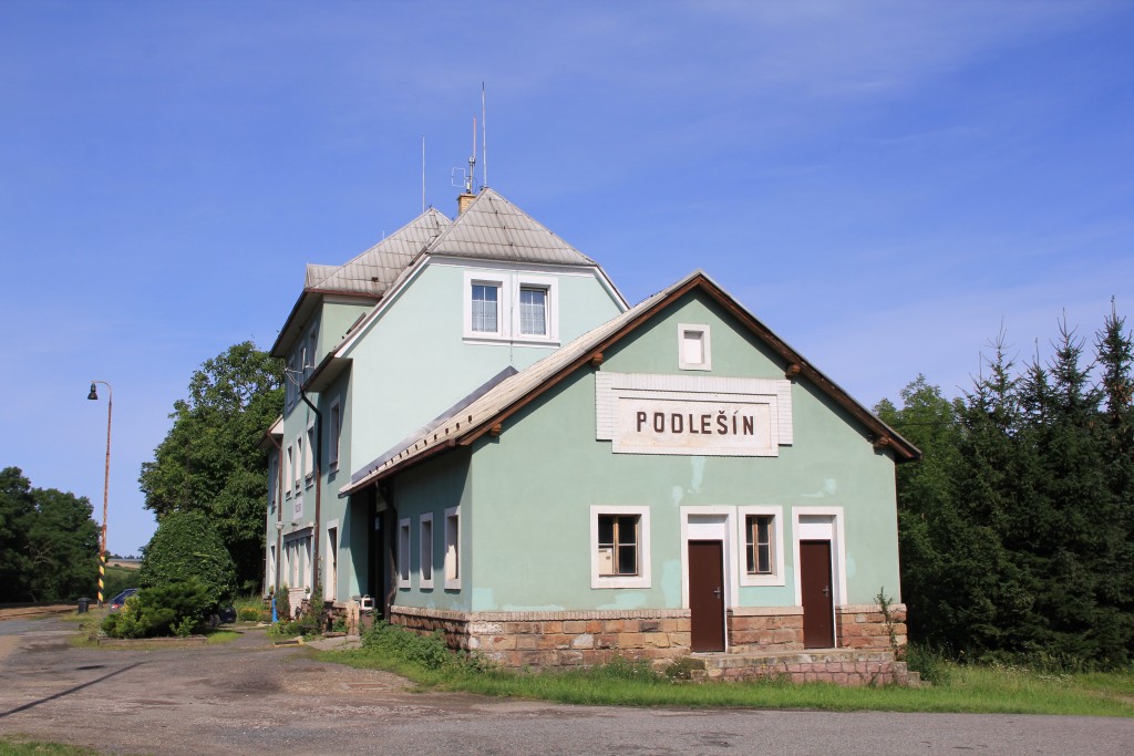 Hier trifft die Verbindungsbahn von 1922 auf die Strecke von Praha, die bis Podlešín noch als Hauptbahn klassifiziert sein soll. Die Station war viergleisig, ist heute dreigleisig, hat ein EG und zwei Stellwerke (mechanische Weichen, Lichtsignale). Kurz nach der Station wird ein großer Viadukt überquert.
