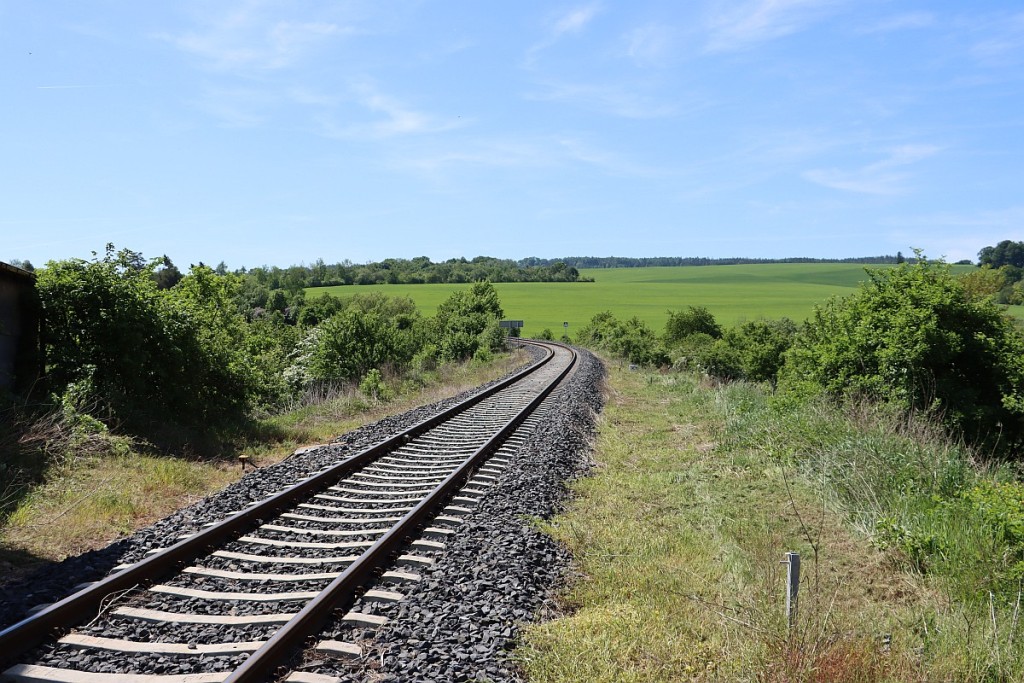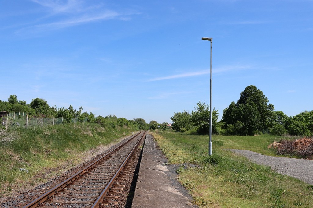 Bild 1: Domoušice (Bahn-km 26,7), Blick Richtung Rakovník