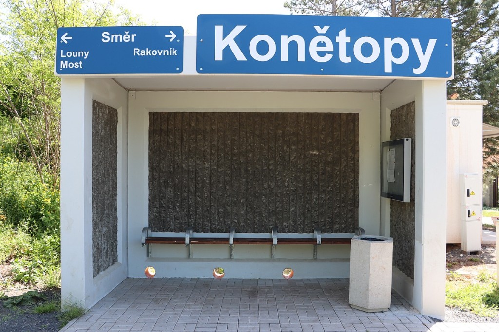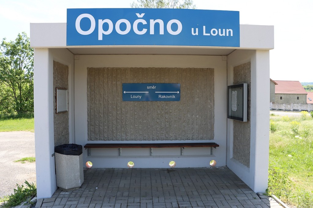 Bild 44: Opočno u Loun, Betonwartehalle mit Richtungstafel