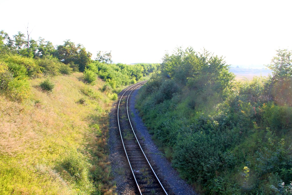 Bild 32: Lenešice, Blick Richtung Louny, rechts die Anschlussbahn zum Getreidesilo